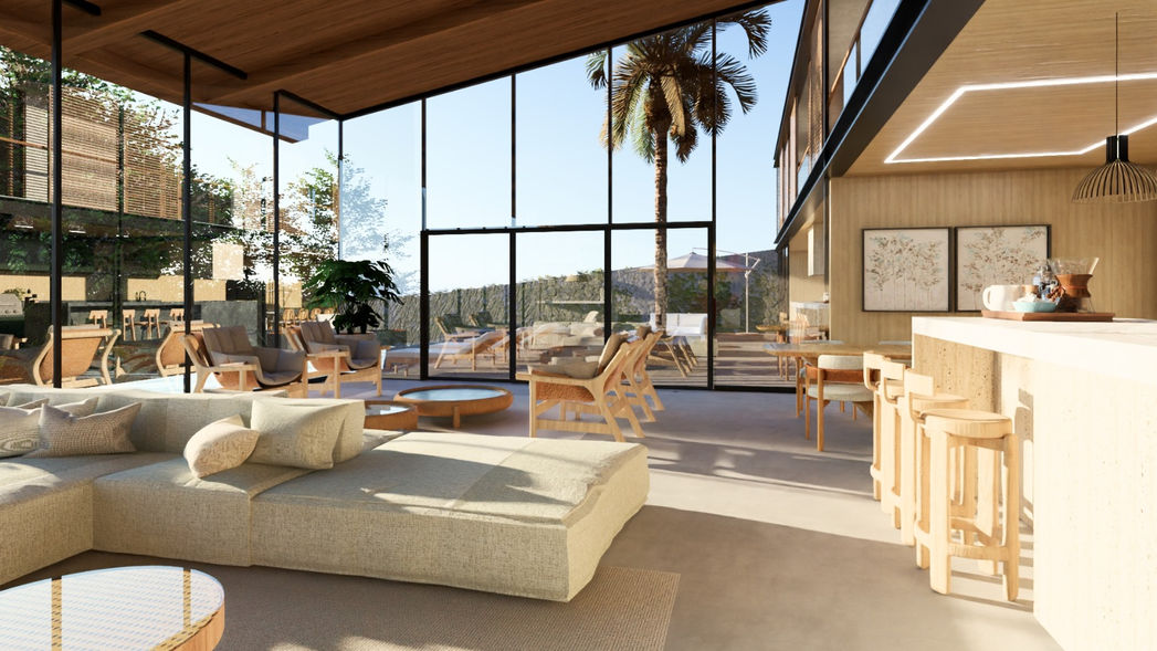 O principal ponto de partida para esse projeto foi a integração dos espaços com a paisagem. Aproveitando a declividade natural do terreno, criamos uma generosa área de lazer com vista permanente para a natureza, assim como os quartos no segundo pavimento, que também possuem vista para a paisagem.